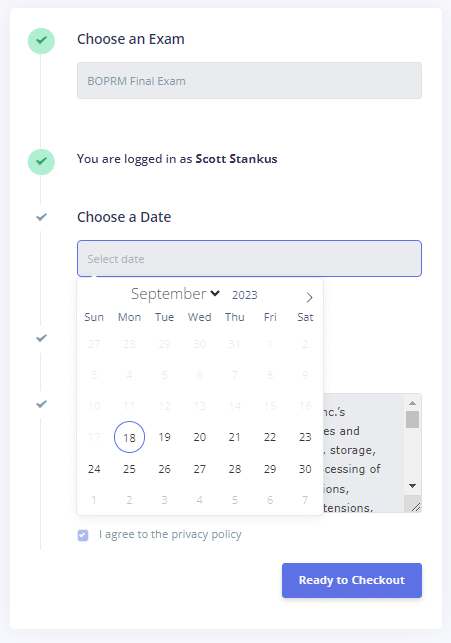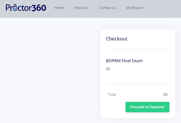 3. Click on “Ready to Checkout“. There is NO COST for your proctored exams. This is for other providers that do charge for proctored exams.