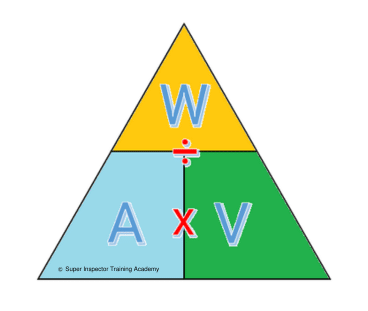 Using the triangle below can help you easily convert from one measurement to another when you know two of the values. In the example below (a simplified version of Watt’s law); W is Watts, A is Amps and V is Voltage.